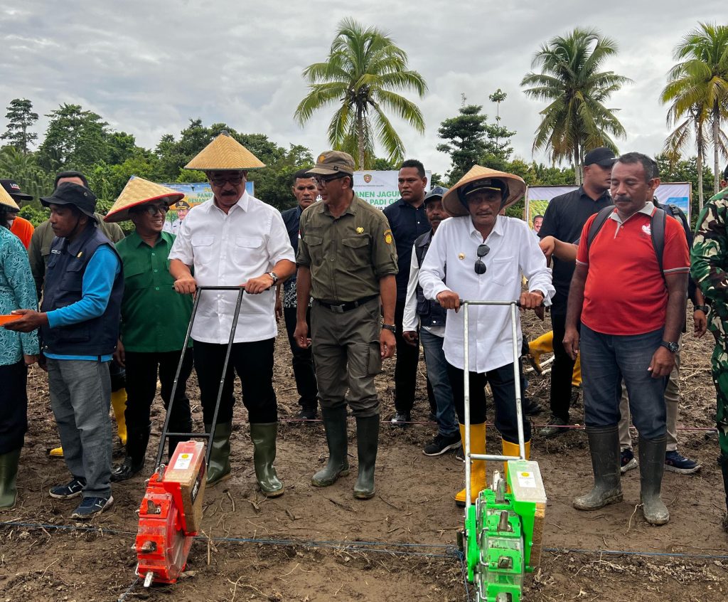 Kegiatan ini juga dihadiri pula Gubernur Maluku Hendrik Lewerissa, Ia juga ikut dalam memanen serta penanaman padi Gogo di Desa Hatusua, Kecamatan Kairatu.(**)