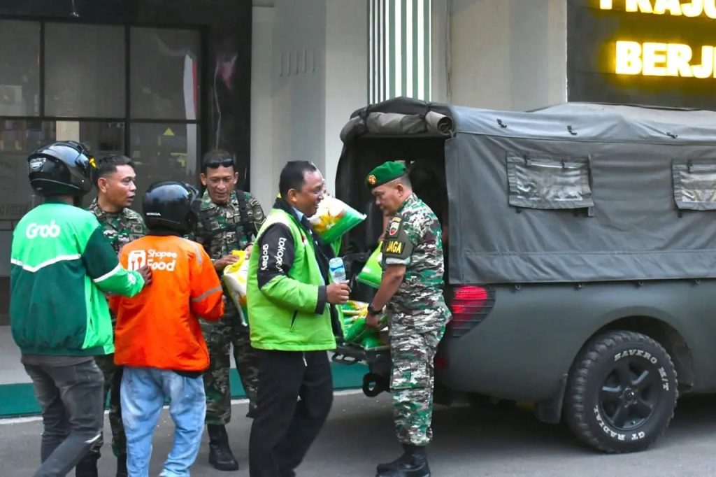 MEDAN-Di tengah suasana unjuk rasa yang sempat mewarnai Kota Medan, Kodam I/Bukit Barisan menunjukkan kepedulian dan empati nyata dengan membagikan lebih dari 500 sak beras kepada para pengemudi ojek online (ojol) di Makodim 0201/Medan, Jumat (29/8/2025).